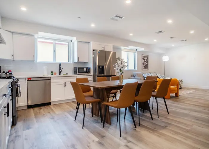Esta pensión está en el barrio Los Angeles Sur, no muy lejos del Museo de Historia Natural del Condado de Los Ángeles. El hotel está situado a unos 10 minutos en coche de la Crypto.com Arena en Los Ángeles. La ubicación a 6 km de la Sala de Conciertos Walt Disney es una ventaja para los huéspedes que se alojen en el Chic & Comfortable Space Near Downtown La & Usc Los Ángeles. El tren urbano Expo/Vermont está a unos 5 minutos a pie, mientras que la parada de autobús Vermont & 36th está bastante cerca del alojamiento.
